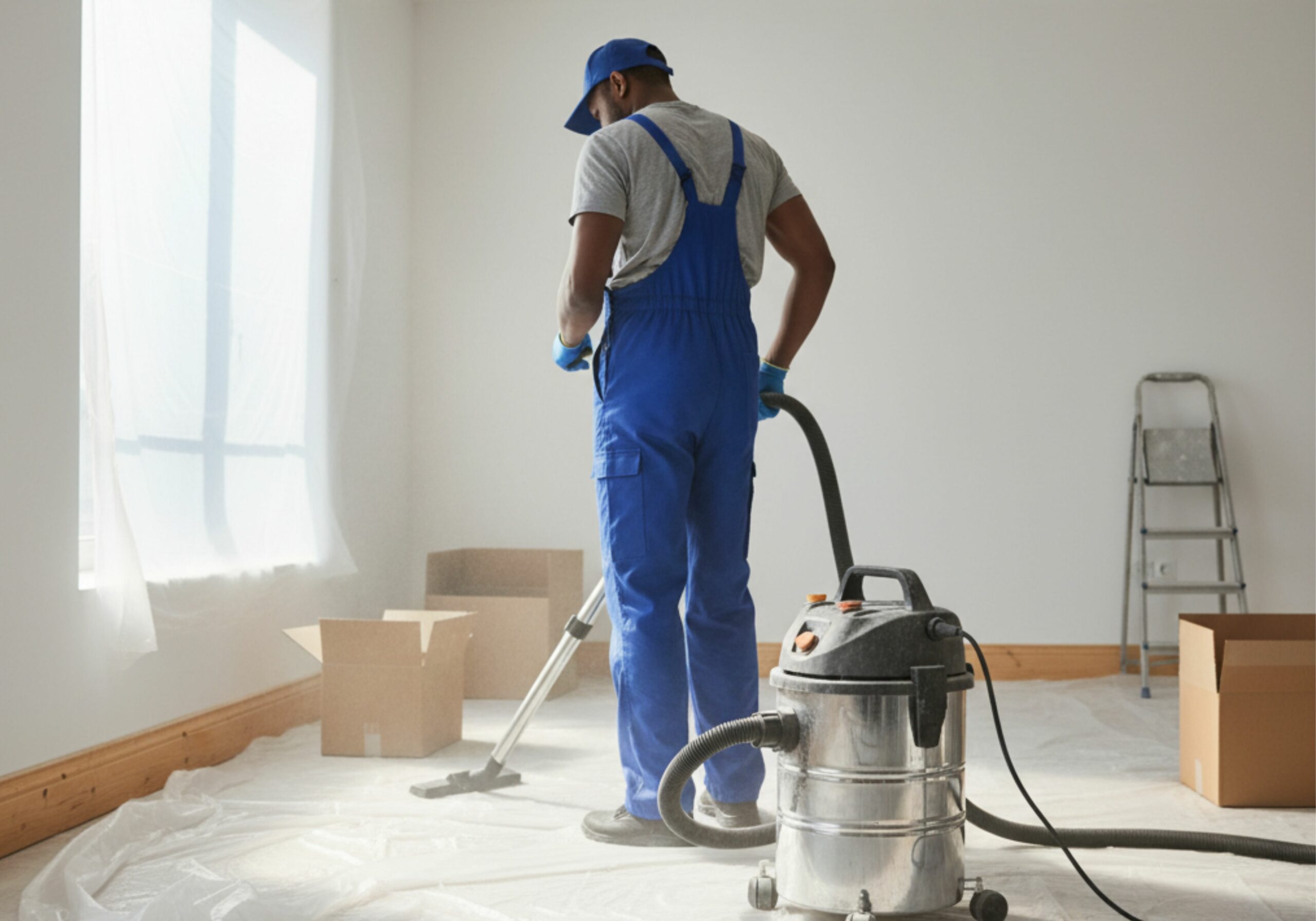 Évacuation des résidus de chantier (poussières, gravats légers, traces de peinture, plâtre, colle).